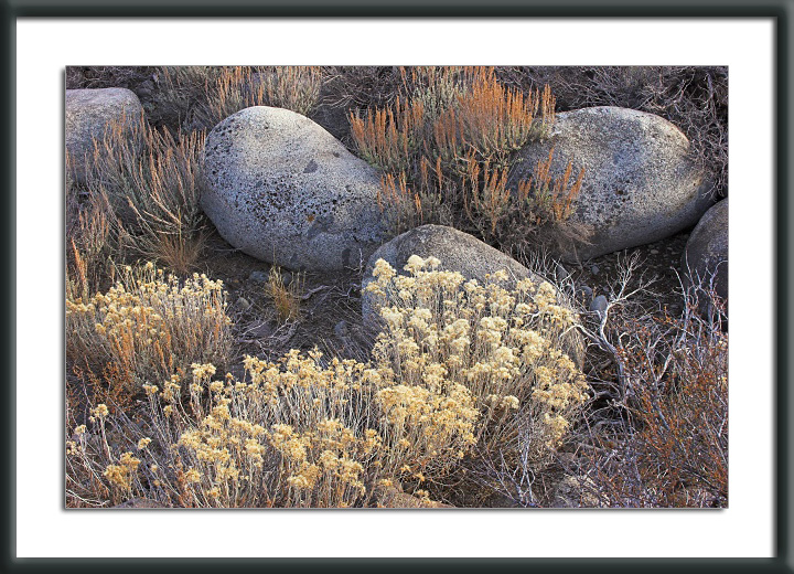 Rabbit Brush, Sage and Rocks along the Truckee River, Truckee, California.
